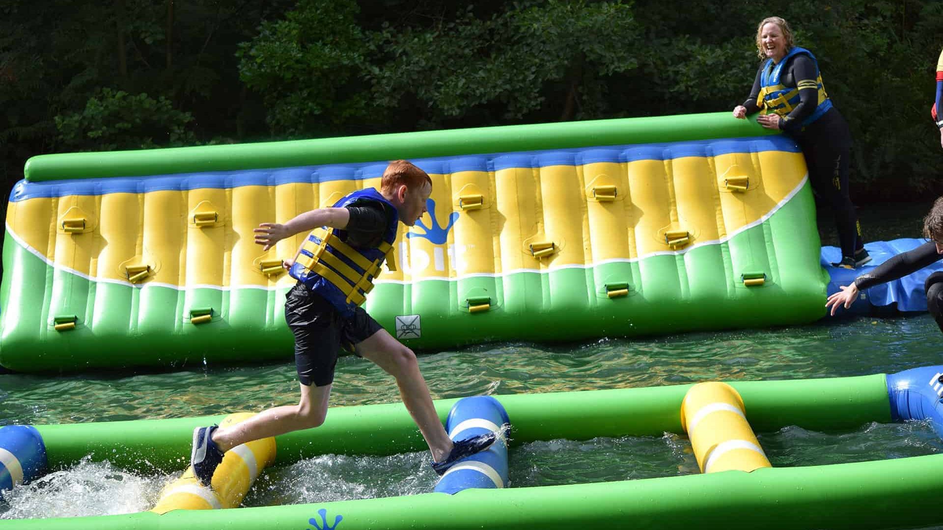 Tucked beneath the dramatic ruins of Corfe Castle, Dorset Adventure Park is a one-of-a-kind family destination. Set within 150 acres of scenic woodland, this waterpark offers two spring-fed lakes filled with over 200 metres of inflatable obstacle courses. You’ll find floating trampolines, slides, balance beams, and climbing walls — all designed to test your agility and keep the adrenaline flowing.