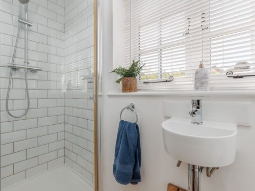 - Shower room on ground floor has ‘rain-drop’ shower, with 11 cm high tray, toilet and a small hand basin.